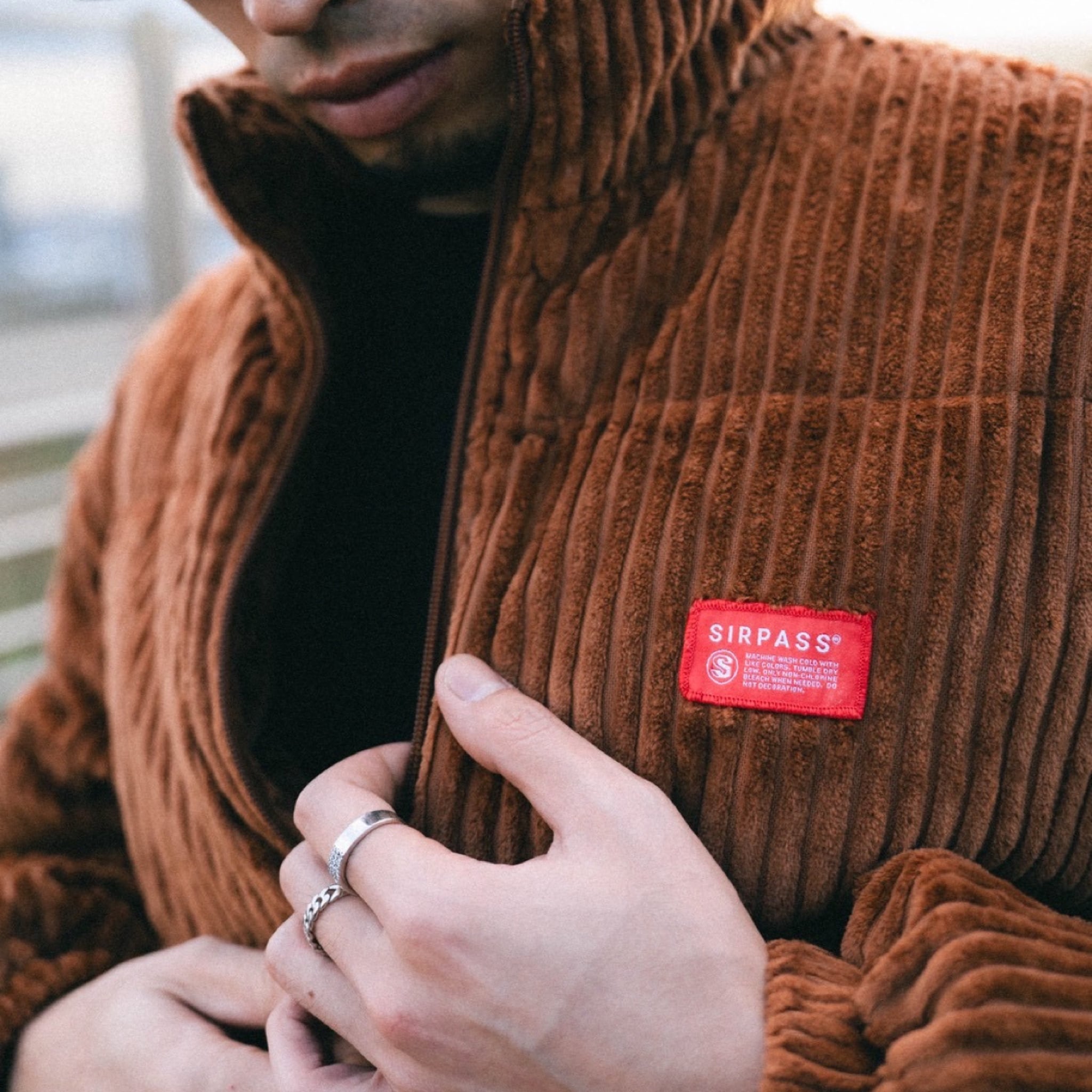 ダウン90%のコーデュロイジャケットです。ボックスシルエットでファンシーな印象。