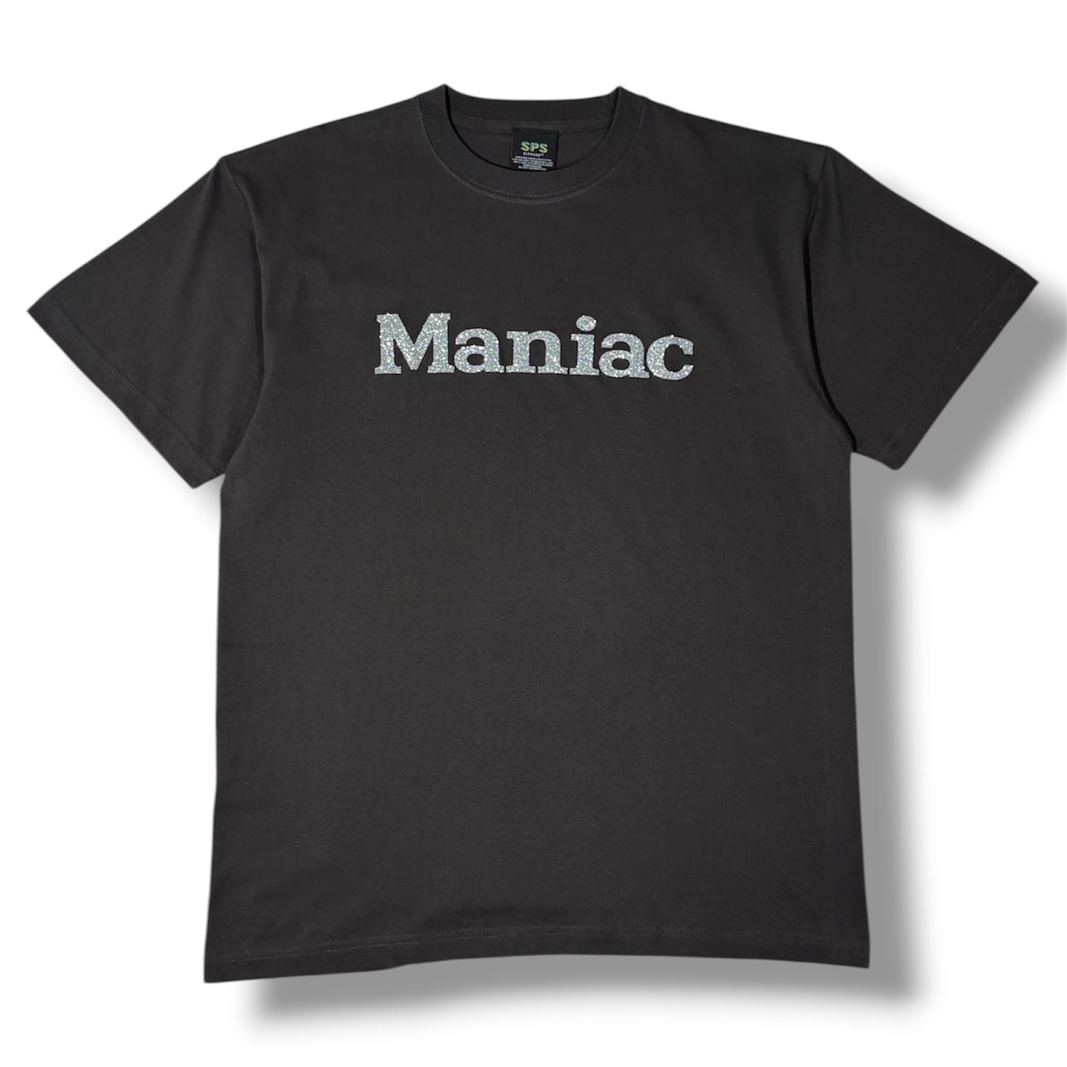 マニアックのグリッタープリントが入ったTシャツです。